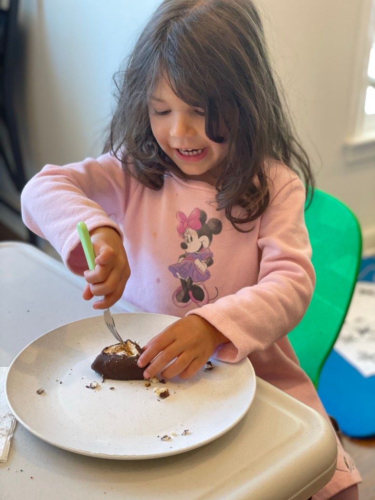Little did she know that the magic was not what was inside the chocolate covering, but her authentic curiosity and presence every step of the way, at every action of chipping away with her fork.